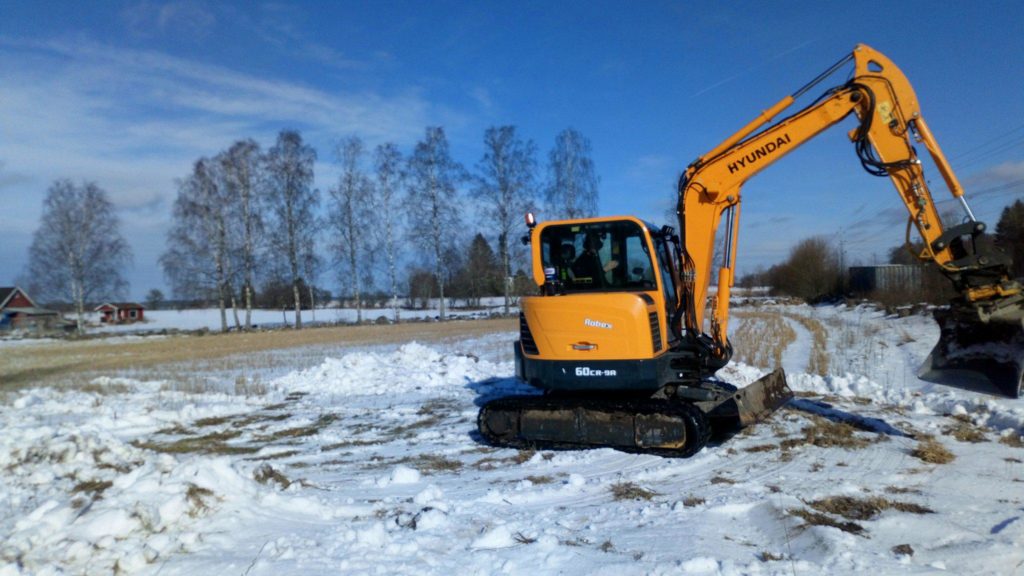 Under de kommande två veckorna utför vi en arkeologisk utredning i ett ännu vintervitt Herrljunga. Trafikverket ämnar anlägga ett förbigångsspår för långsamtgående tåg och därför undersöker vi nu en sträcka längs med banvallen, från Remmene kyrka till Hallebo.
